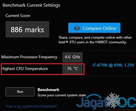 Kami me-load Prosesor Core i7-4790K dan Core i7-4790K dengan program Intel XTU pada kecepatan 4600Mhz (ring 4500Mhz), 1.25V Vcore, 1.25V Vring dan melihat perbedaan suhunya: