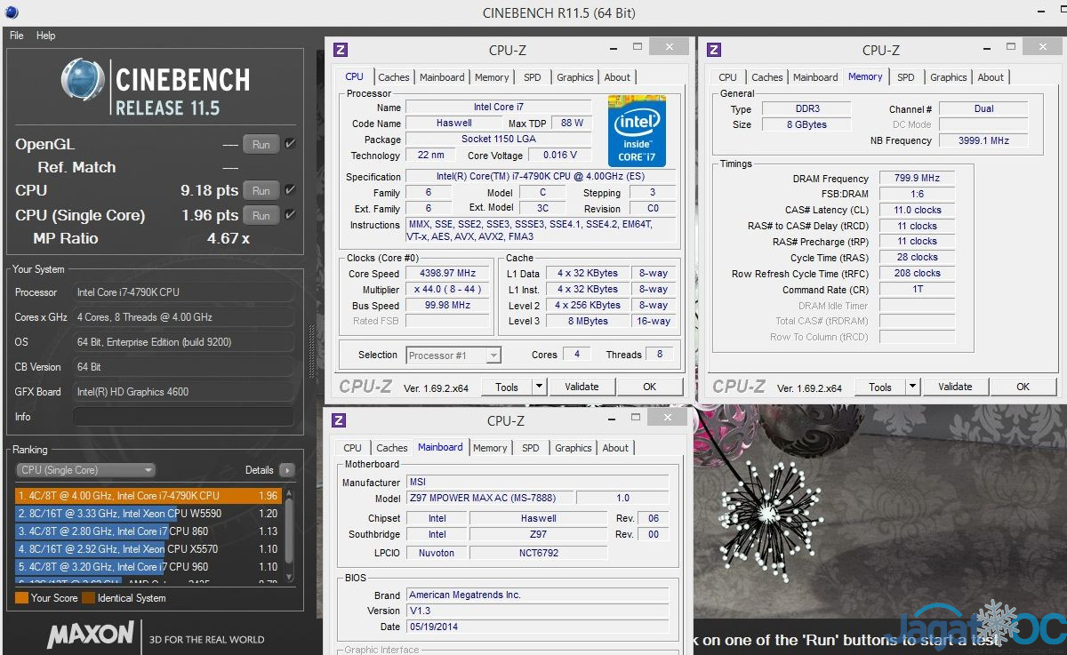 Kami menggunakan Cinebench R11.5 untuk mengukur kemampuan Devil’s Canyon 4790K secara singkat, cepat, dan efektif.