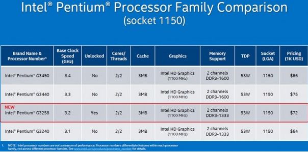 Prosesor ini merupakan sebuah prosesor dual-core Pentium berbasis arsitektur “Haswell”, hanya saja prosesor mempunyai sebuah kelebihan khusus dibanding prosesor pentium lainnya, yakni kemampuan Overclock! (ya, anda tidak salah baca)
