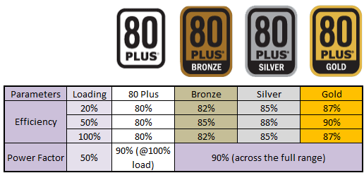 | 80 Plus Gold | 87% | 90% | 87% | 88% | 92% | 88% | ||