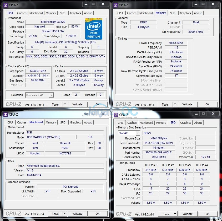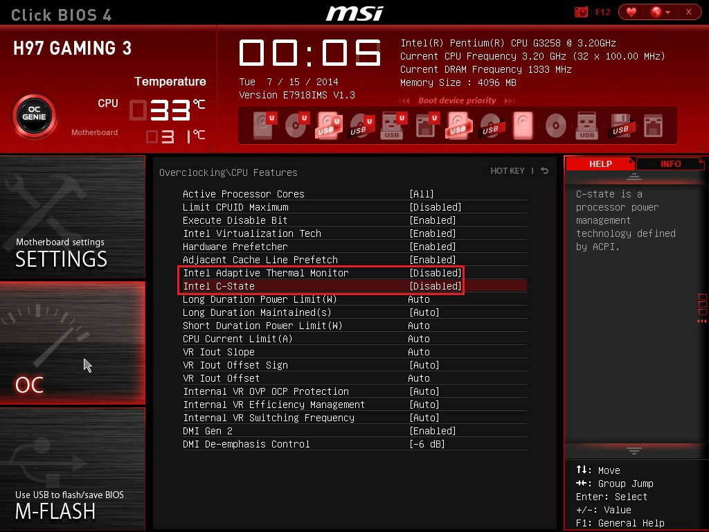 - Motherboard: MSI H97 Gaming 3, BIOS v1.3 Official