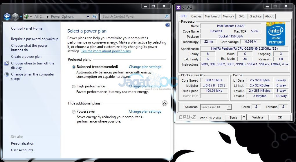 Perlu anda ketahui , saat Overclocking menggunakan mode ‘Simple’, sebagian fitur power-saving pada CPU masih aktif. Ini akan menyebabkan CPU anda saat idle akan terbaca pada 800Mhz, dan saat load baru terbaca kecepatan sebenarnya. Jika anda tidak suka dengan CPU yang menurunkan kecepatannya saat idle, anda bisa menggunakan mode ‘High Performance’ pada windows power management: