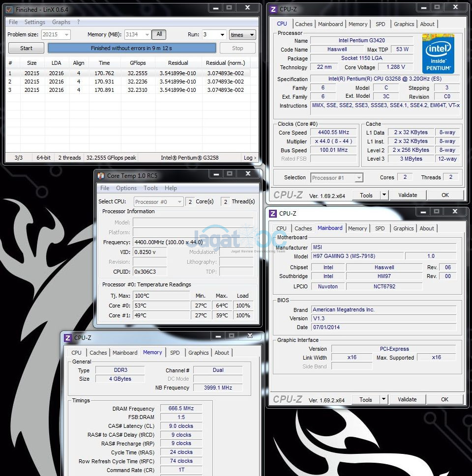 Setelah di-OC, performa Pentium G3258 meningkat sekitar 26% dari defaultnya. Peningkatan yang tidak terlalu besar ini mungkin terjadi karena penggunaan DDR3-1333.