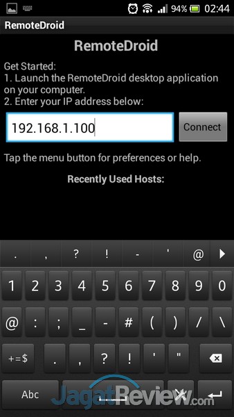 Aplikasi RemoteDroid di gadget akan meminta IP PC Anda. Masukkan IP yang Anda dapat dari RemoteDroid Server di PC ke dalam bar yang tersedia. Setelah Anda memasukkan IP tersebut, secara otomatis RemoteDroid akan menampilkan virtual touchpad dan keyboard di layar gadget Anda. Anda dapat langsung menggunakannya sebagai keyboard dan mouse virtual untuk mengontrol PC Anda!