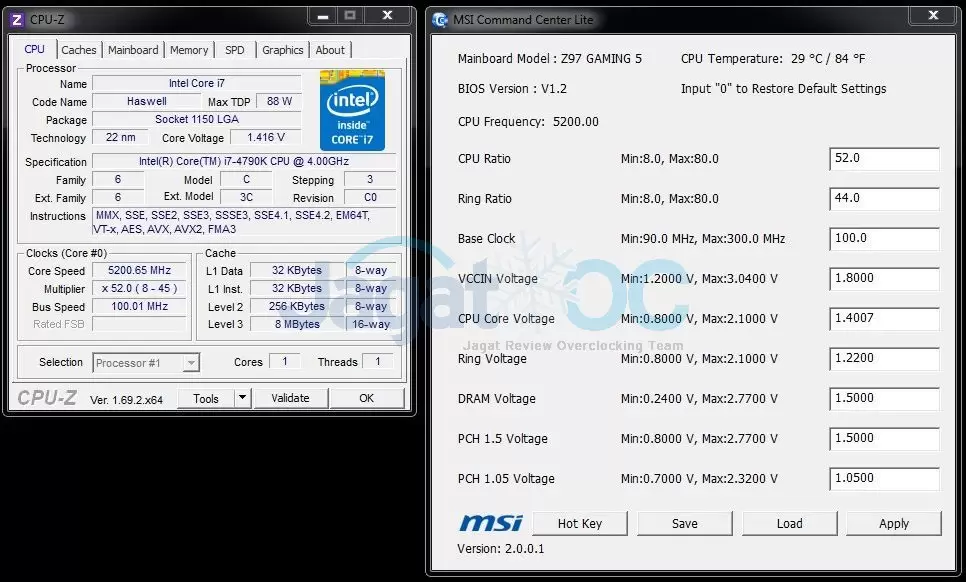 Prosesor Core i7-4790K kami mencapai batas maksimalnya di 5200 Mhz menggunakan VCore 1.4V. Tidak terlalu buruk, namun juga belum terlalu jauh meninggalkan Core i7-4770K. (Sebagai perbandingan, Core i7-4770K kami yang terbaik bisa mencapai clock yang sama pada 1.4V)