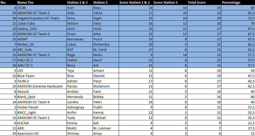 Halangan berupa babak kualifikasi yang disiapkan oleh tim juri AOCT 2014 Nasional telah diselesaikan oleh ke25 tim peserta dengan baik sekitar jam 4 sore tadi. Sejak jam 10 pagi, tim peserta memang harus menjalani kualifikasi berupa audisi yang dibagi ke dalam 3 tes kemampuan, yaitu hands-on knowledge, PC assembly, dan overclocking. Nah, dari ke-25 tim yang hadir di arena turnamen yang didukung oleh Intel, Asus, Corsair, Gigabyte, MSI, dan Team tersebut, tim mana saja yang pada akhirnya lolos ke babak utama?