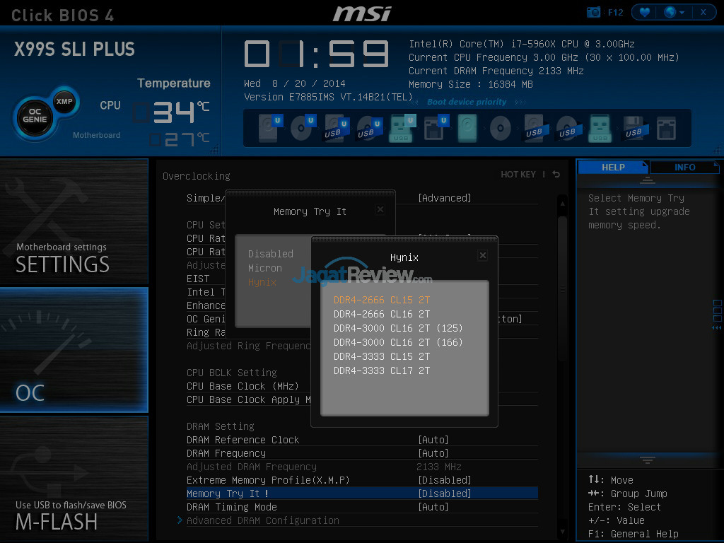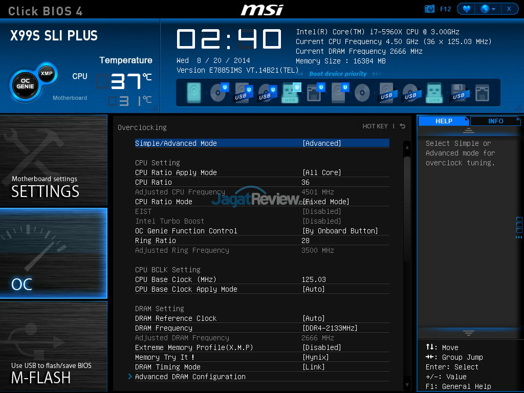 Kami juga menyempatkan diri untuk melakukan overclocking ringan pada prosesor Haswell-E Core i7-5960X. Setting BIOS yang kami gunakan dapat dilihat dibawah ini:
