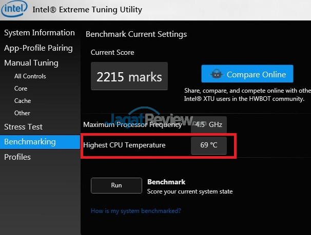 Meski kami sudah menggunakan VCore 1.3V dan kecepatan 4.5Ghz, Core i7-5960X mencatatkan suhu 69 C, tidak terlalu panas. Kami yakin konfigurasi 4.5Ghz ini masih dimungkinkan untuk berjalan harian selama pendinginnya mencukupi.