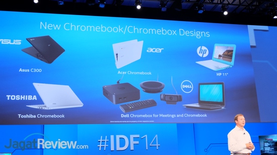 Intel juga mengumumkan dukungan yang lebih luas untuk berbagai sistem operasi yang kini telah umum digunakan. Salah satu bentuk dukungan tersebut adalah kerja sama Intel dengan beberapa partner dalam menghadirkan laptop atau perangkat mobile lain dengan sistem operasi Chrome OS dari Google. Perangkat dengan harga terjangkau dengan Chrome OS yang memanfaatkan teknologi terbaru dari Intel dikabarkan akan kembali membanjiri pasar dengan produk baru dari beberapa partner Intel, seperti Acer, Asus, Dell, HP, dan Toshiba.