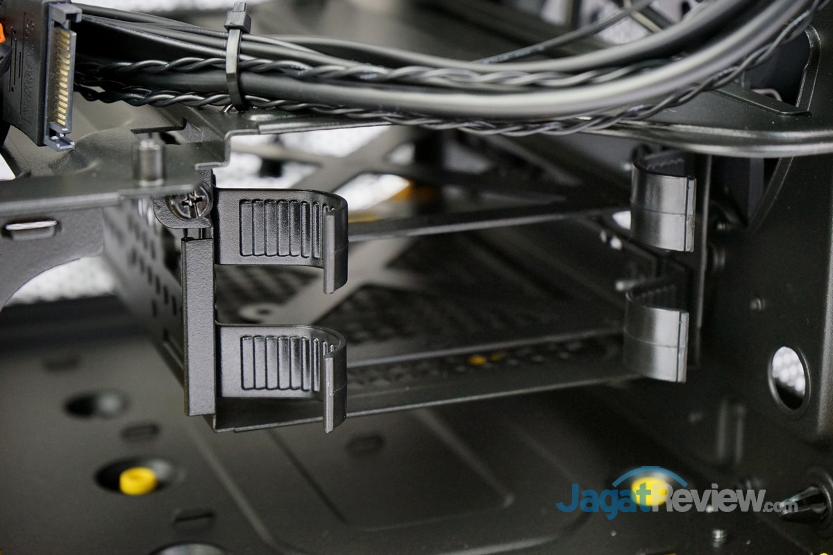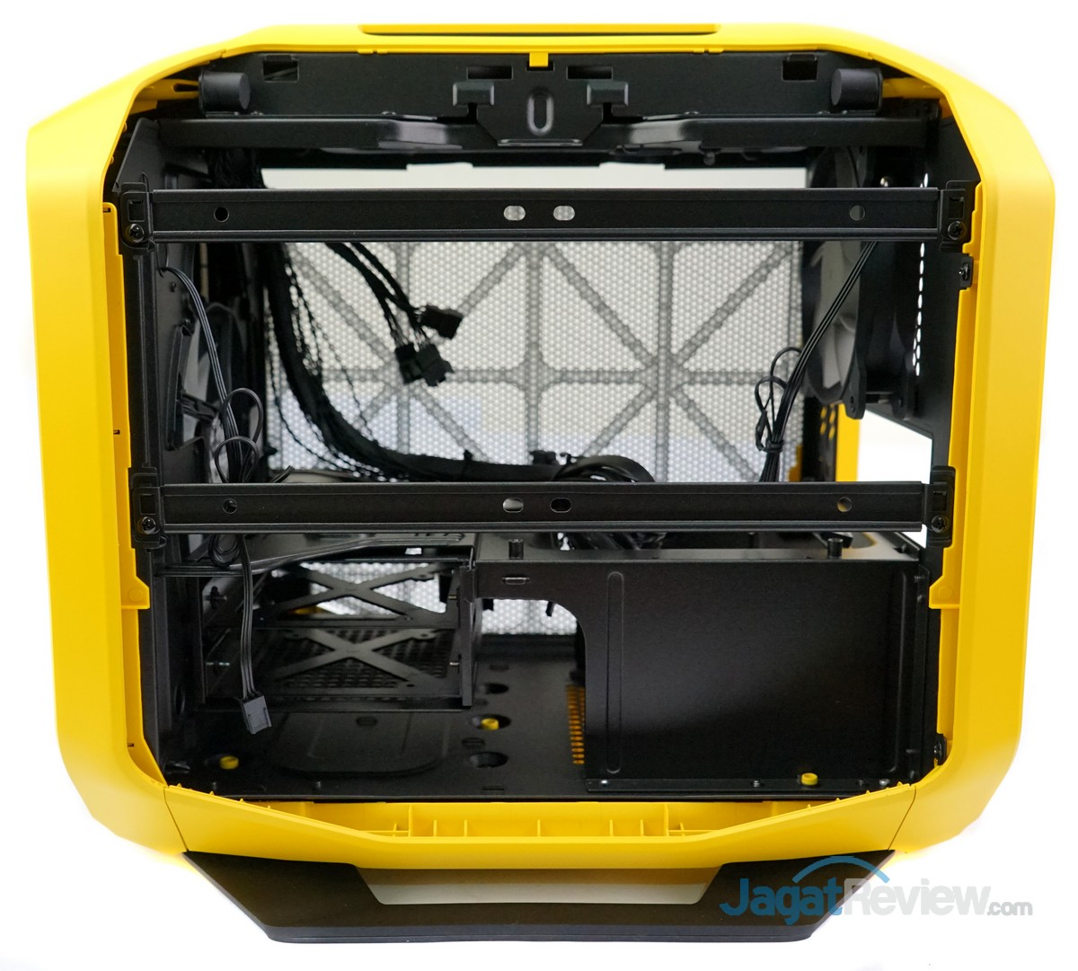 Front-panel casing ini dilengkapi dengan 2 port USB 3.0, fan-controller dan I/O untuk Audio.Bagian atas casing Graphite 380T ini juga dilengkapi dengan pegangan untuk mempermudah para gamer untuk membawa casing ini ke acara-acara LAN-Party.Bagian belakang dari casing Corsair Graphite 380TSide-panel kiri dan kanan dari casing ini menggunakan sistem screwless, sehingga para pengguna dapat membuka sidepanel casing ini dengan mudah.Bagian dalam dari casing Corsair Graphite 380TCasing Corsair Graphite 380T ini mampu mengakomodasi 2 unit harddisk berukuran 2,5″ ataupun 2 unit SSD.Selain menyediakan bracket storage yang mampu menampung 2 unit harddisk berukuran 3,5″, Corsair juga melengkapi casing ini dengan bracket storage khusus yang mampu menampung 2 unit extra SSD atau HDD berukuran 2,5″.Pada bagian belakang, casing ini dilengkapi dengan sebuah fan pendingin berukuran 120mm.Pada bagian depan casing ini dilengkapi dengan fan pendingin berukuran 140mm.Casing ini mampu menampung PSU berukuran ATX yang biasa digunakan pada casing berukuran MID-Tower, selama ukuran panjang PSU yang digunakan tidak lebih dari 160 mm.Pada bagian bawah, casing ini juga dilengkapi dengan filter penyaring debu untuk exhaust PSU.Bagian dalam dari casing Corsair Graphite 380T jika dilihat dari arah sidepanel kanan.