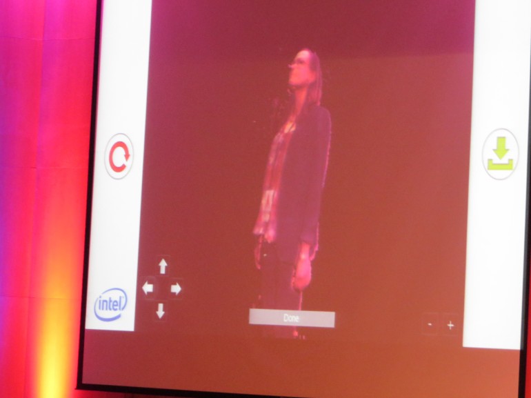 Teknologi RealSense yang didemonstrasikan Intel tersebut menggunakan model manusia dan seorang asisten yang kemudian memutar model beberapa kali sambil mengarahkannya ke tablet sebagai subjek. Kemudian render 3D dari model tersebut yang tampil secara penuh secara pelan-pelan muncul di layar di belakang panggung hanya dalam waktu beberapa menit saja. Model 3D yang dihasilkan tersebut kemudian bisa dimanipulasi dengan menggunakan software atau langsung mengirimkannya ke printer 3D untuk dicetak. Dalam websitenya, Intel pun telah menjelaskan tentang teknologi RealSense ini dimana nantinya pengguna bisa melakukan scan, memodifikasi, mencetak dan membagi gambar yang ditangkap dalam bentuk 3D. Hasil bidikan tersebut juga bisa dimanipulasi dan dimainkan dengan software 3D langsung di tablet dengan menggunakan teknologi sensor tangan dan jari.