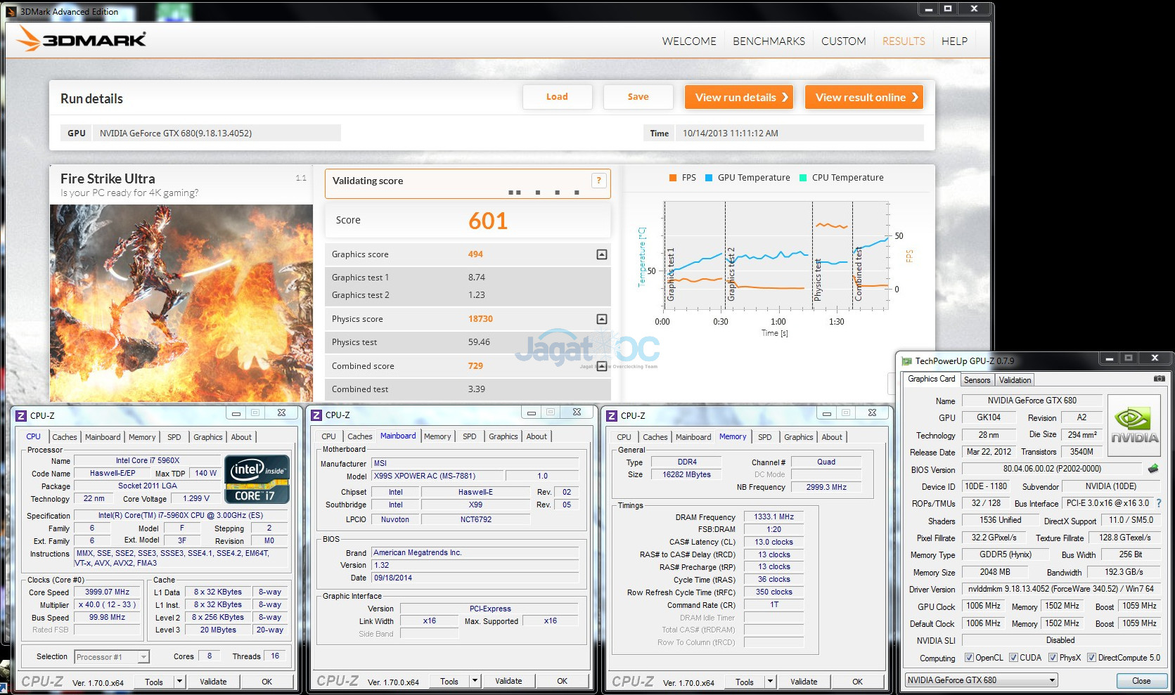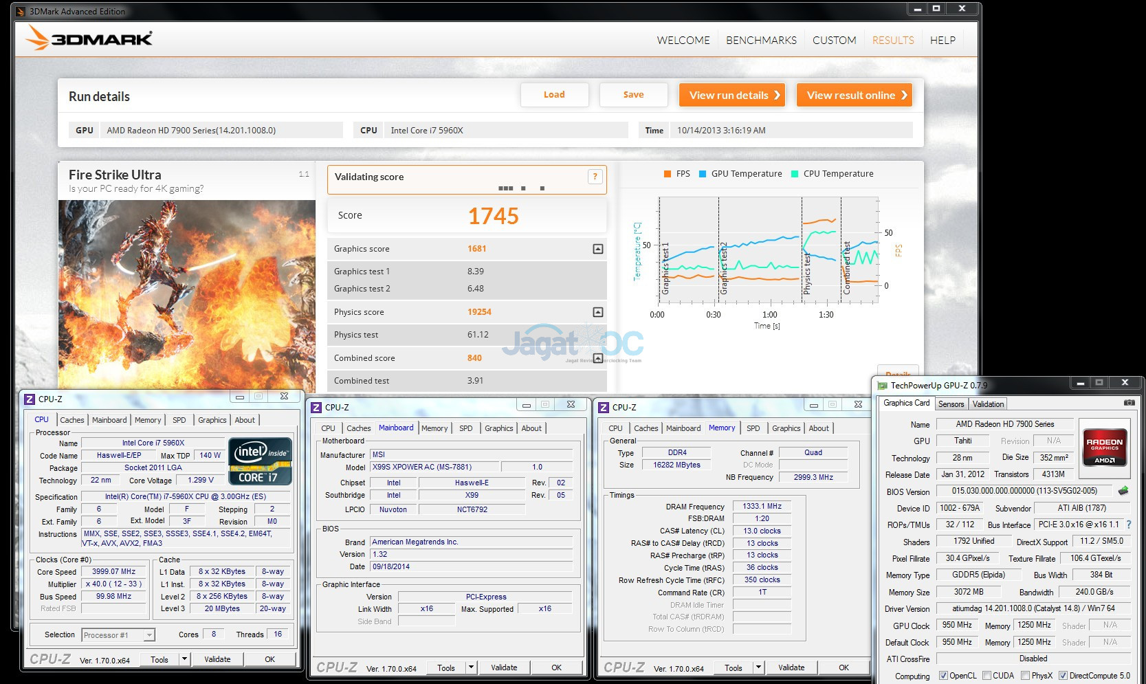 Tanpa menunggu lama, kami langsung menjalankan 3DMark Fire Strike Ultra pada semua GPU yang kami miliki, berikut screenshot 3DMark FSU-nya (hasil yang dikompilasi ada di bagian bawah):