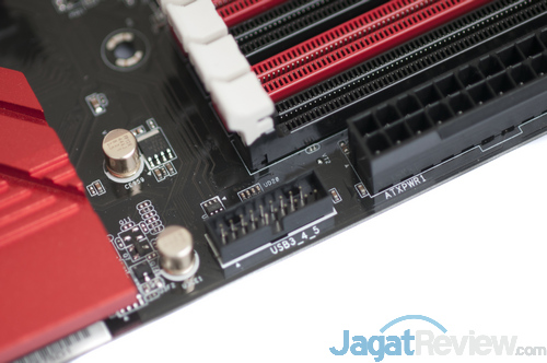 Chipset South Bridge juga terlindungi dengan sangat baik, dengan pendingin Gaming Armor yang cukup lebar.