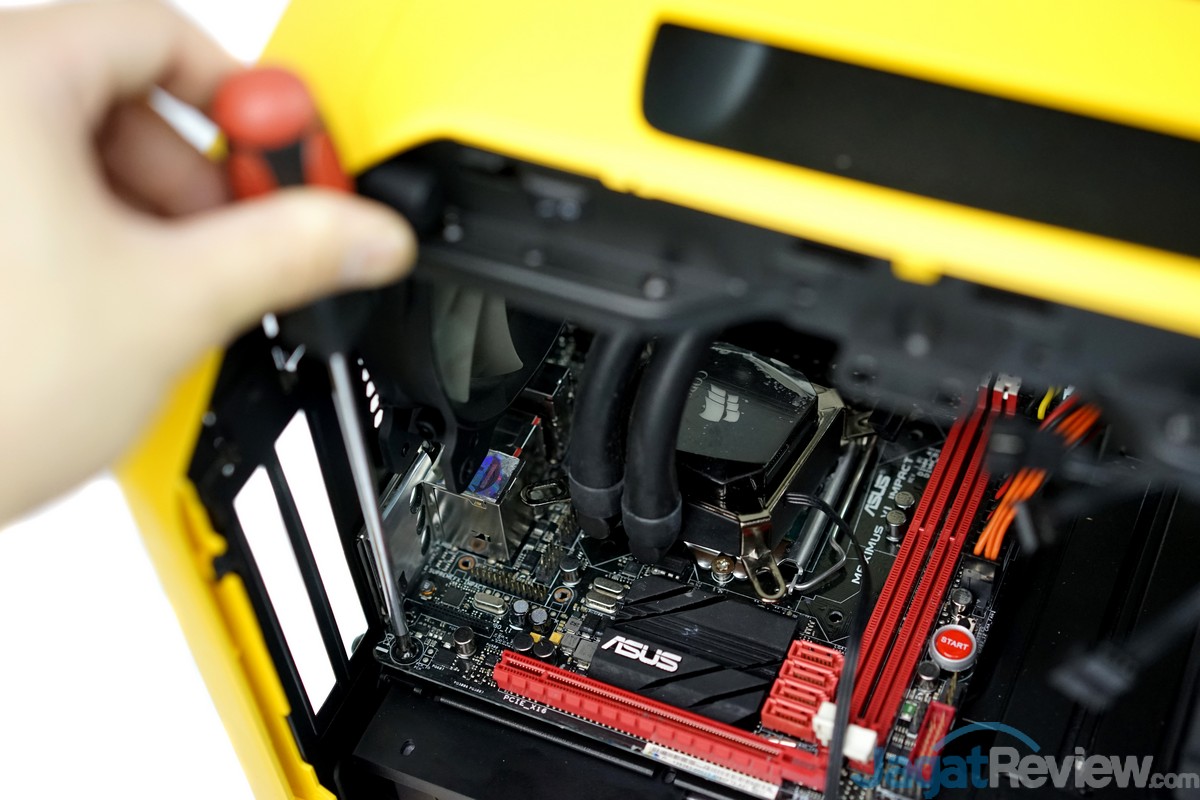 Casing Corsair Graphite 380T ini juga sudah didesain dengan baik, sehingga kami dapat mengunci baut motherboard Mini-ITX di dalam casing ini dengan mudah.