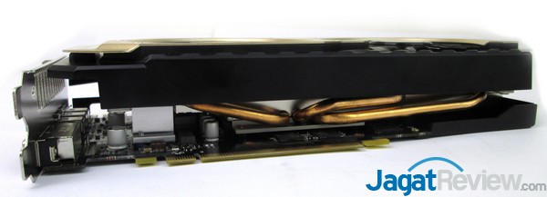 Jika Anda tidak terlalu menyukai bagian cover berwarna emas pada graphics card ini, hal tersebut bukanlah masalah. Bagian ini dapat dengan sangat mudah untuk dilepas cukup dengan menggunakan obeng (+), tanpa perlu takut merusak segel ataupun membongkar bagian pendingin dalam graphics card ini.