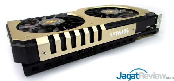 Graphics card ini menggunakan penyangga berbahan alumunium yang solid, terbentang dari ujung konektor input, hingga bagian depan yang memberikan ventilasi udara out take dari kipas.