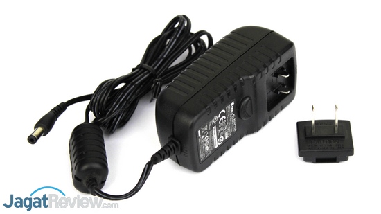 Kembali, di paket penjualan MyCloud EX2 yang kami terima, kami tidak menjumpai adanya konektor adaptor daya yang sesuai dengan standar soket di Indonesia. Semoga saja hal yang sama tidak terjadi di paket penjualan yang dipasarkan di Indonesia.