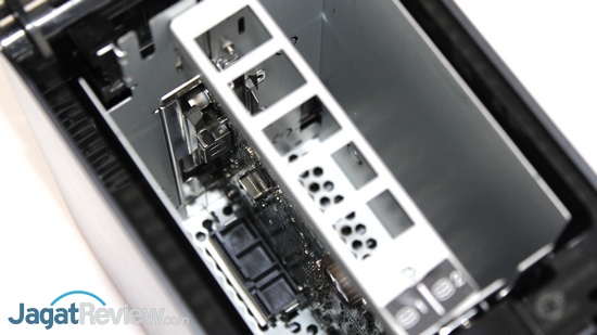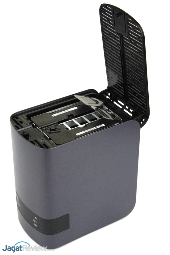 Sama seperti MyCloud EX4, NAS ini hanya bisa menampung harddisk berukuran 3.5″ saja karena mekanisme mounting yang ada memang tidak memungkinkan penggunaan storage berukuran lain, seperti harddisk 2.5″ atau SSD 2.5″. Hal ini tentu saja disayangkan mengingat WD sendiri menyediakan varian diskless enclosure untuk NAS ini. Pembeli varian diskless enclosure tentu saja akan memiliki keterbatasan dalam memilih storage yang bisa digunakan di dalam NAS ini.