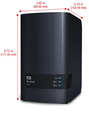 Desain dari WD MyCloud EX2 ternyata berbeda dari MyCloud EX4. Walaupun mengusung nama yang mirip, keduanya ternyata memiliki perbedaan yang sangat jauh dari segi fisik. Selain ukuran yang lebih kecil karena hanya menampung 2 HDD 3.5″ saja, MyCloud EX2 memiliki desain dengan posisi akses ke harddisk di bagian atas perangkat, bukan di bagian depan.