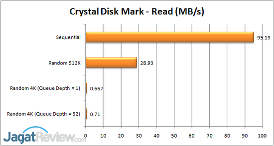 Kecepatan baca dari NAS ini, untuk data sequential, bisa dikatakan tinggi. Hal itu tentu saja menjadi bekal yang sangat berharga untuk NAS dari WD ini. Untuk penulisan data, penggunaan mode RAID 0 tentu saja membuat NAS ini mampu menulis data, terutama untuk data-data berukuran kecil, dengan cepat. Kecepatan tersebut terlihat dari angka hasil pengujian di atas.