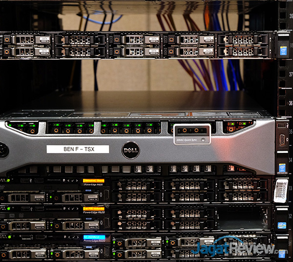 Di dalam ruang ini pun kami diperlihatkan beberapa inovasi terakhir Dell seperti server generasi ke-13 mereka (R730XD). Demo singkat menampilkan bagaimana mudahnya menarik data kondisi server dengan sebuah smartphone berbasis Android. Proses ini dilakukan dengan memanfaatkan fitur NFC. Selain itu, Dell juga memperlihatkan solusi SSD 1.8” yang mereka gunakan untuk memperbesar ruang storage SSD dalam sebuah server dalam rak. Dell menggunakan SSD dengan ukuran hingga 960GB. Ini membuat sebuah server (yang diperlihatkan) mampu menampung 24 unit SSD tersebut.