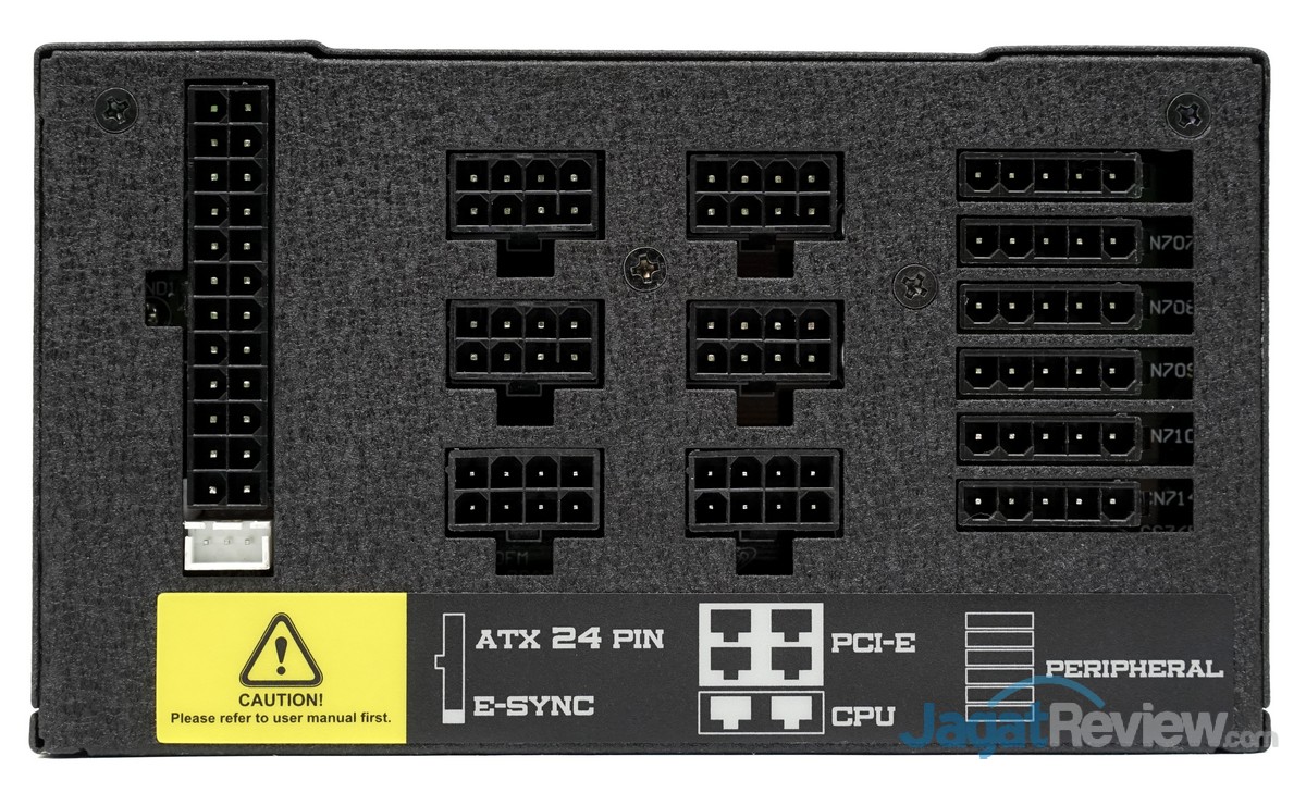 Berbeda dengan pendahulunya yang masih menggunakan sistem kabel semi-modular dan non-modular, PSU FSP baru ini sudah menggunakan sistem kabel full-modular. Selain itu, pada port kabel modular 24-pin ATX, terdapat port berwarna putih yang merupakan konektor untuk fitur E-Sync. Fitur itu berfungsi untuk meningkatkan kemampuan PSU ini untuk mengontrol noise/ripple listrik pada rail +12V, +5V dan +3,3V.