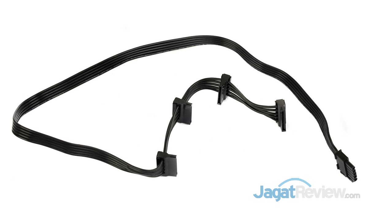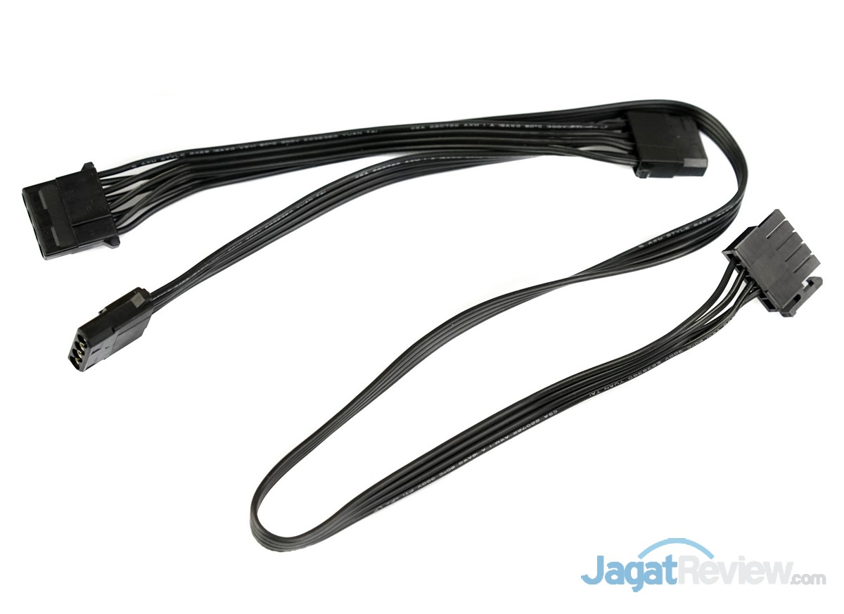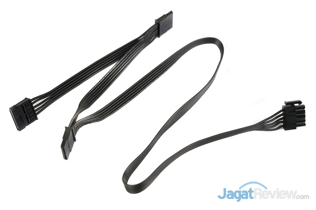 Kabel modular konektor power 4-pin molek dan konektor power SATA dari PSU ini hadir dengan desain yang tipis dan fleksibel, sehingga mempermudah pengguna untuk mengatur manajemen kabel di dalam casing miliknya. Selain itu, AURUM PT 1200 Watt ini juga dilengkapi dengan 1 unit kabel modular yang didesain khusus untuk konektor power SATA yang digunakan pada casing yang menggunakan sistem bracket untuk storage.