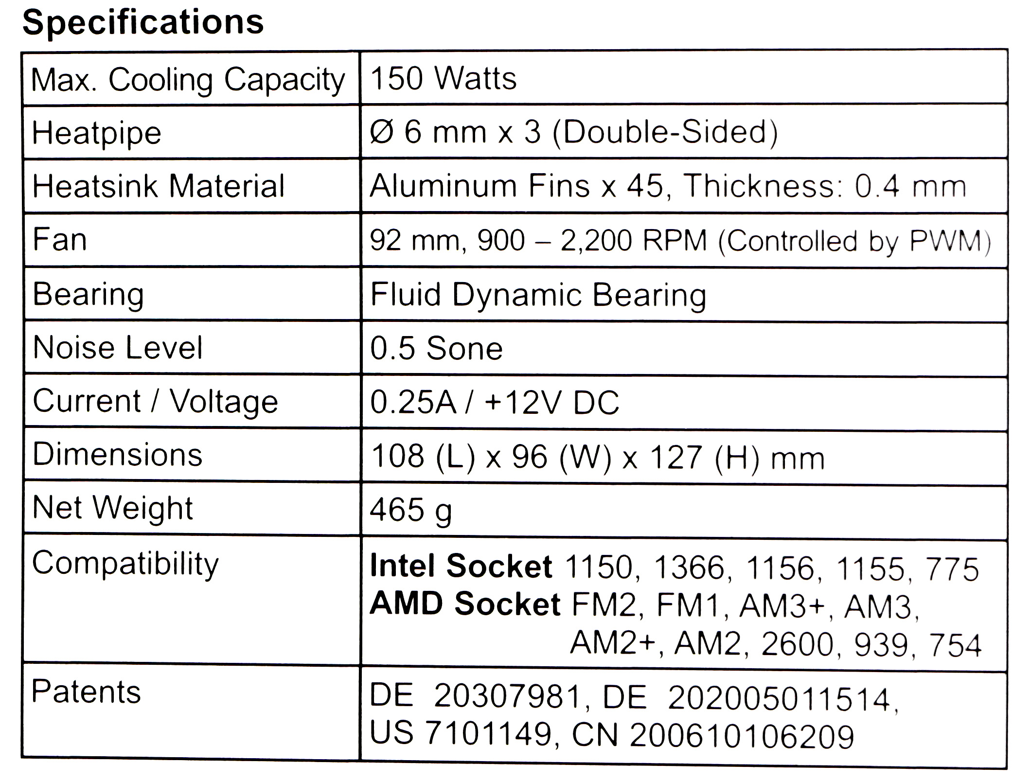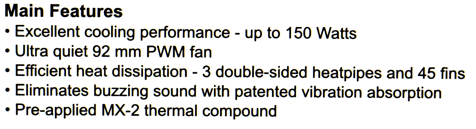 Bagian depan heatsink ini dilengkapi dengan fan pendingin berdiameter 92 mm yang memiliki kecepatan putar 900 RPM hingga 2200 RPM, berubah-ubah berdasarkan kontrol PWM FAN dari motherboard yang digunakan.