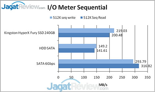 Seperti pada HDTune, pengujian dengan I/O Meter juga menghasilkan kecepatan yang cukup baik.