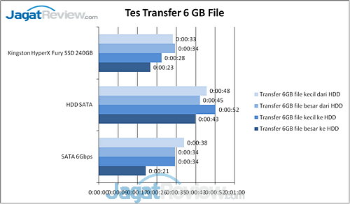 Pada tes real-life, Kingston HyperX Fury 240GB mampu melakukan transfer data sebesar 6GB dengan cepat dan diunggul dibanding pesaingnya.