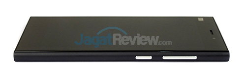 Pada sisi atas dapat ditemukan slot SIM dan lubang audio jack 3,5mm.