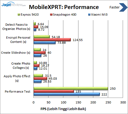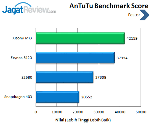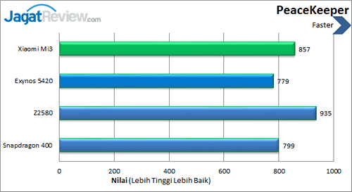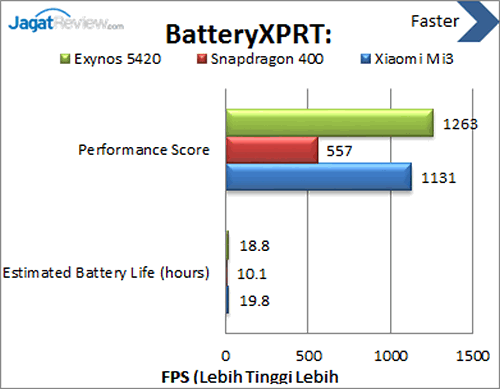 Kami pun juga melakukan pengujian terhadap baterai dengan menggunakan aplikasi BatteryXPRT. Ternyata, dengan melakukan simulasi melalui BatteryXPRT, Xiaomi Mi3 mampu bertahan selama hampir 20 jam! Hal tersebut tentu membuat Xiaomi Mi3 dapat dipakai selama seharian pada pemakaian normal. Tentu saat dipakai bermain game, smartphone ini akan lebih boros.