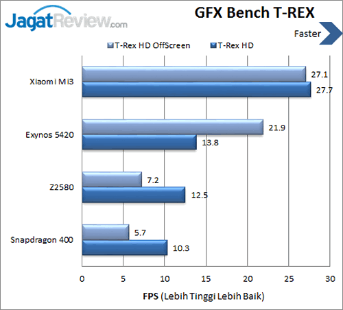 Kami menggunakan aplikasi GFXBench. Dengan nama lama GLBenchmark, aplikasi ini akan melakukan benchmarking GPU untuk menguji kinerja 2.0 untuk Android dan iPhone. Semakin tinggi hasil yang didapat, semakin baik sebuah GPU dalam menangani OpenGL ES yang banyak dipakai untuk game di platform Android.