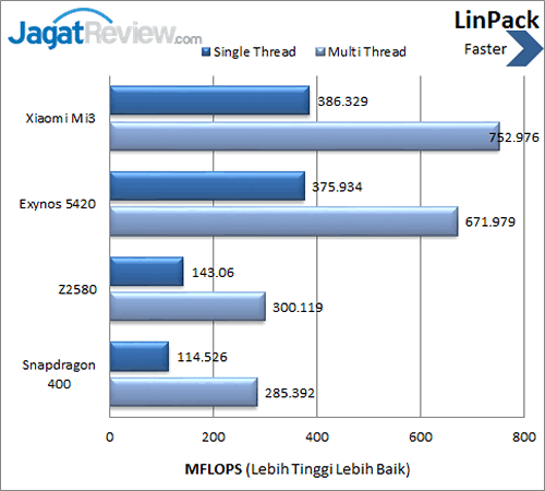 LinPack merupakan benchmark untuk mengukur kinerja sebuah perangkat dalam menghitung floating point. Hasilnya dalam bentuk nilai operasi floating point per detik atau MFLOPS (Million Floating Point Per Second). Semakin tinggi nilainya, semakin baik.
