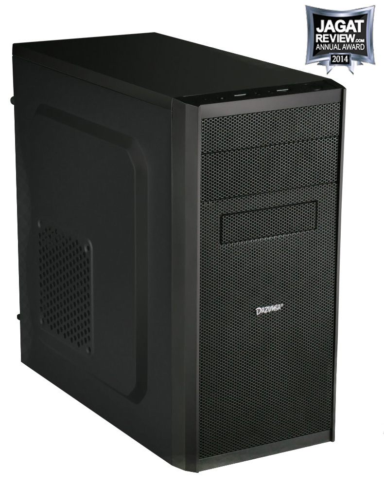 Kami menobatkan casing Dazumba DE230 ini sebagai salah satu casing terbaik untuk sebuah sistem PC yang digunakan di perkantoran. Desain casing ini hadir dengan desain sederhana dan ukuran fisik casing inipun tergolong kecil sehingga hanya memakan sedikit ruang meja kerja. Casing Dazumba DE230 ini juga sudah didesain secara khusus untuk menampung sistem PC yang menggunakan motherboard Micro-ATX kelas low-end berukuran kecil yang biasanya digunakan pada PC perkantoran, seperti motherboard intel H81/H61 dan AMD A55. Walaupun casing ini didesain khusus untuk sebuah PC perkantoran dan hanya dibanderol dengan harga jual berkisar Rp 150.000,00~Rp 160.000,00 , Dazumba tetap tidak lupa untuk melengkapi casing ini dengan fitur cable-management. Casing ini juga dilengkapi dengan sistem penempatan storage harddisk / SSD yang unik dan efisien, sehingga menyisakan ruangan yang cukup lega agar aliran udara di dalam casing ini dapat mengalir dengan baik, bahkan mampu menampung VGA card berukuran besar yang memiliki panjang hingga 315 mm.