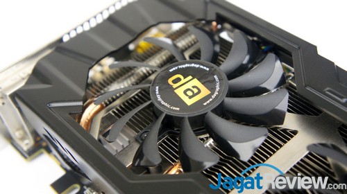 R9 285 besutan Digital Alliance ini terlihat menarik dengan warna hitam polos pada bagian pendinginnya. Terlihat juga terdapat dua buah kipas yang siap membantu melepas panas yang terdapat pada graphics card tersebut.