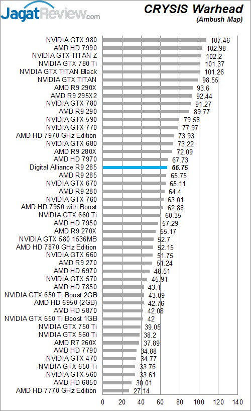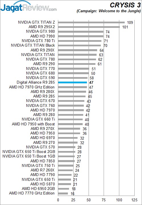 Setting : 1920 x 1080; Texture Resolution & System Spec – Very High; AA Off
