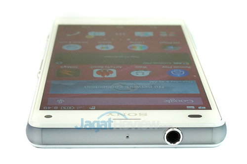 Dan pada bagian kiri dapat ditemukan slot nanoSIM, microSD, dan microUSB. Jangan lupa menutup pelindungnya saat ingin menenggelamkan smartphone yang satu ini.