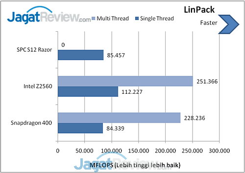 LinPack merupakan benchmark untuk CPU yang digunakan untuk mengukur seberapa cepat perangkat Android Anda. Hasilnya dalam bentuk MFLOPS(Million Floating Point Per Second). Semakin tinggi nilainya, semakin bagus.