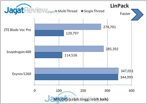 LinPack merupakan benchmark untuk CPU yang digunakan untuk mengukur seberapa cepat perangkat Android Anda. Hasilnya dalam bentuk MFLOPS(Million Floating Point Per Second). Semakin tinggi nilainya, semakin bagus.