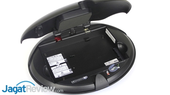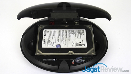 Perangkat ME1000X3D ini memiliki bentuk dasar menyerupai gambaran sebuah UFO dengan berbagai tombol kontrol terletak di bagian atas. Bagian atas dari perangkat tersebut bisa dibuka dengan cara menekan tombol pengunci di bagian depan untuk mengakses kompartemen storage yang ada. Pengguna bisa memasang storage dengan ukuran 3.5″ maupun 2.5″ dengan interface SATA sebagai storage internal multimedia player tersebut.