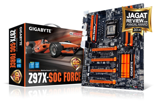 Motherboard dengan corak warna jingga dari Gigabyte menandakan bahwa motherboard tersebut merupakan motherboard seri overclocking, yang diciptakan dengan tujuan meraih potensi overclocking setinggi-tingginya, dan juga kemudahan dalam melakukan overclocking. Seperti yang bisa anda saksikan dalam hands-on singkat kami bersama Z97X-SOC Force, motherboard tersebut penuh dengan fitur overclocking, mulai dari penggunaan komponen mewah untuk regulator daya (Controller IOR IR3580 + MOSFET IOR IR3553), desain SMT-DIMM untuk memaksimalkan kemampuan overclocking memori, dan yang paling mengesankan bagi kami: serangkaian panel berisi tombol/switch yang akan memudahkan overclocking.