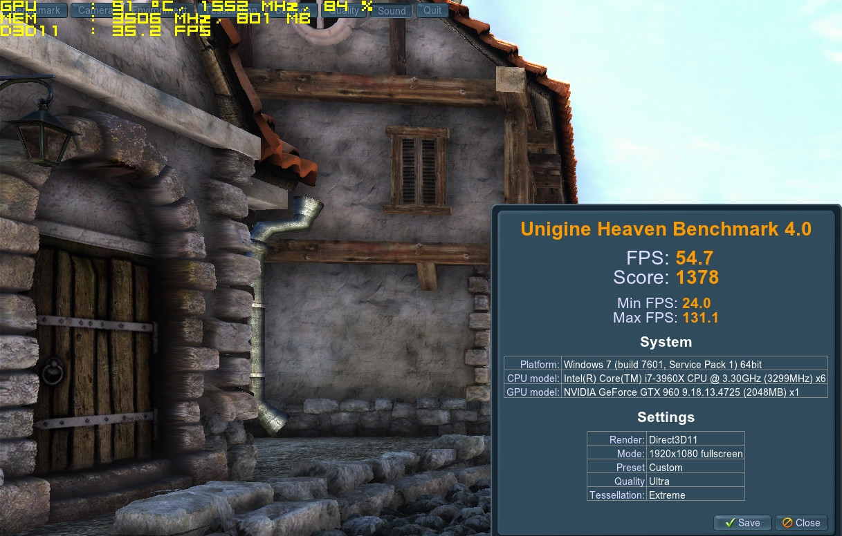 Meng-overclock memory DDR5 pada GTX 960 bisa dilakukan menggunakan MSI Afterburner, sama seperti overclocking GPU. Dari keadaan default-nya yang ada di angka 1750Mhz (effective 7000Mhz DDR5, atau 7 Gbps), kami berhasil menambahkan sekitar 250Mhz lagi untuk mencapai angka 2000Mhz (effective 8000Mhz, atau 8 Gbps). Perlu diketahui, karena memory interface GTX 960 yang ‘hanya’ 128-bit, melakukan overclocking pada memori DDR5 pada GTX 960 akan memberi performa ekstra yang lumayan signifikan.