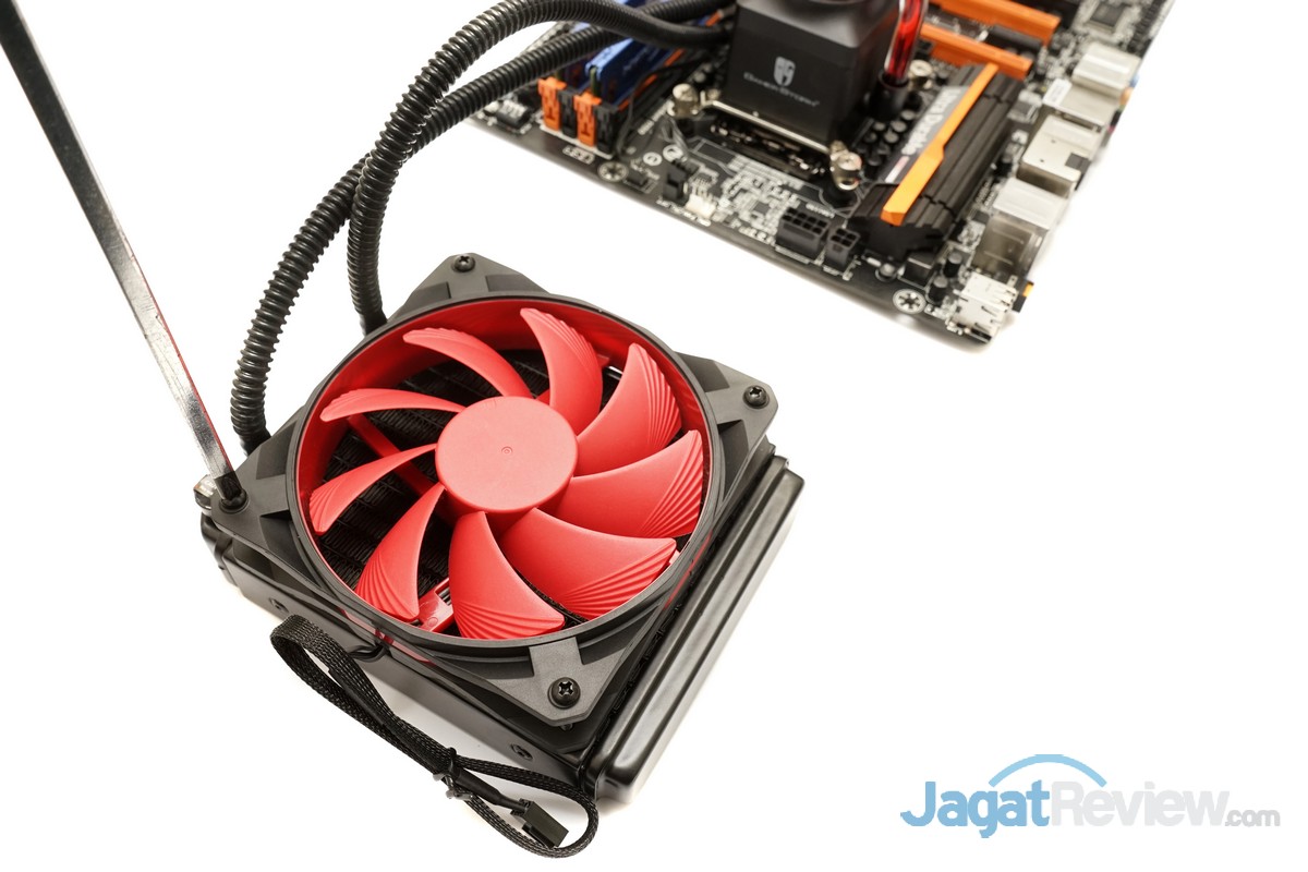 Terakhir, karena pengujian dilakukan di dalam casing, kami memasang radiator berukuran 120mm milik Gamer Storm Captain 120 pada bagian atas casing pengujian.
