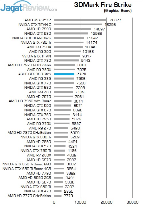 ASUS sendiri cukup aggresive dalam menaikkan clock speed dari GeForce GTX 960 mereka. ASUS memiliki clock GPU berbeda 112 MHz dengan versi reference-nya serta clock memori naik menjadi 7200 MHz. Penasaran dengan performa GeForce GTX 960 STRIX dari ASUS? Kita ada sedikit cuilan hasil pengujian yang mungkin dapat membuat rasa penasaran Anda sedikit hilang.