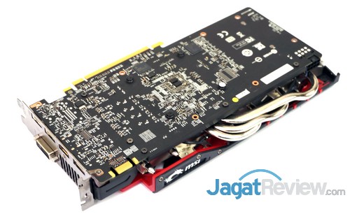 Walaupun telah menggunakan pendingin non-reference, MSI tetap menjaga form factor dari graphics card-nya. Terlihat ketebalan VGA tersebut sangat “ramah” dengan dua slot saja, sehingga memudahkan Anda untuk melakukan konfigurasi multi-GPU. Sedangkan untuk panjangnya sendiri sedikit membengkak dari ukuran standar GeForce GTX 960.