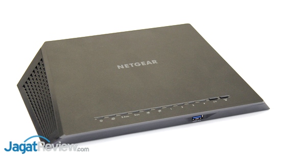 Selain port USB 2.0 di bagian belakang tersebut, Netgear juga menyediakan satu port USB 3.0 di bagian depan. Tentu saja, penempatan port USB 3.0 di bagian depan tersebut memudahkan pengguna yang ingin memasang storage ke port USB 3.0 tersebut dibandingkan bila harus memasangnya di bagian belakang.
