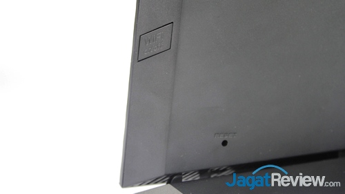 Selain port konektivitas dan tombol power, di sisi yang sama terdapat pula tombol WPS. Terdapat dua buah tombol lain di sekeliling badan dari RT-AC52U, yaitu tombol reset yang terdapat di sisi belakang dan tombol WiFi On/Off di sisi samping kanan. Di bagian belakang, terdapat pula lubang untuk memasang router ini ke tembok.