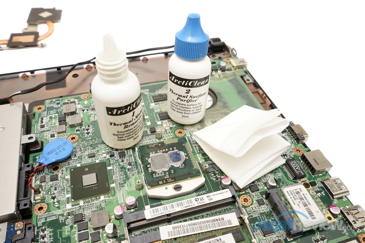 Membersihkan sisa-sisa thermalpaste lama yang ada diatas prosesor dengan menggunakan cairan pembersih thermalpate ArctiClean dan Tissue. Jika tidak memiliki cairan pembersih Thermalpaste, Anda dapat menggunakan tissue basah bayi untuk membersihkan sisa-sisa thermalpaste lama dan langsung dikeringkan dengan tissue kering.