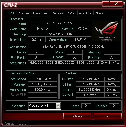 Mengingat prosesor pentium G3258 memiliki kecepatan default 3.2Ghz, tentunya angka 6 Ghz ini bukanlah nilai yang kecil. Namun frekuensi tinggi ini bisa dicapai dengan setting minimal berkat profil overclocking pada ASUS Maximus VII Gene.